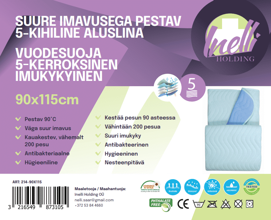 Uudentyyppinen pestävä imevä aluslakana viidellä patentoidulla kerroksella. Tekniset yläkerrokset siirtävät nesteen nopeasti alakerroksiin ja tuote kuivuu minuuteissa suojaten sekä henkilöä että patjaa.