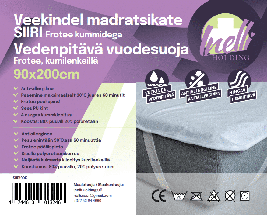 Waterproof mattress cover SIIRI PU/frotee (with elastic)